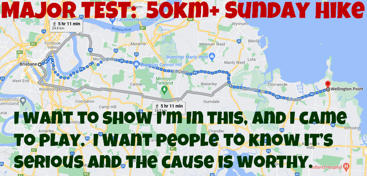 When I do my BIG WALK, the plan is 30km – 60km every day. That’s chipping away at a total distance more than 2400km. But until I’m doing it, I haven’t earned your support, and we need your donation NOW.
