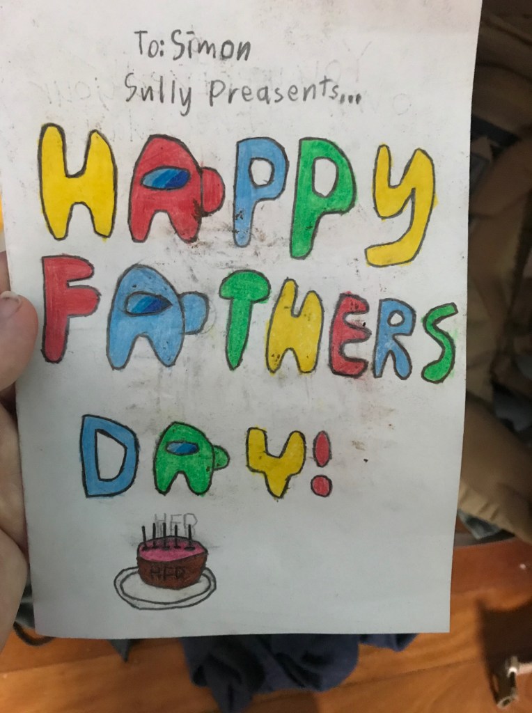 With the car suffering catastrophic engine failure, we find ourselves without wheels or much in the way of recklessly-toss-aroundable cash. But the kids have given me a lovely sweet fathers day morning, as they always do.