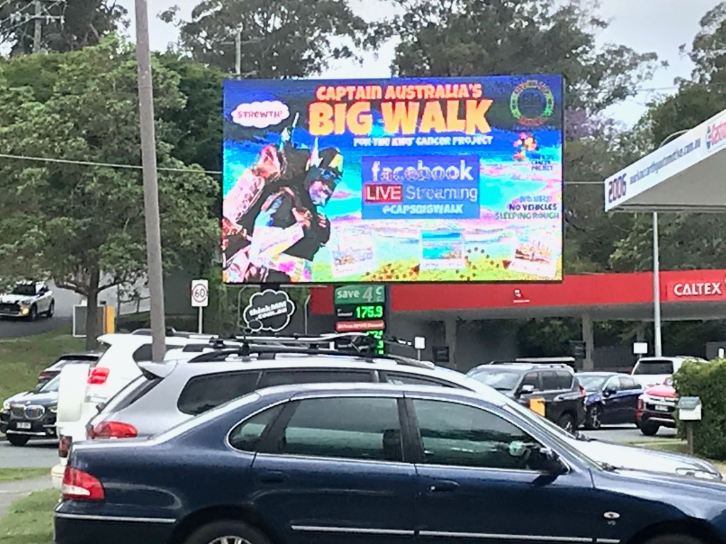 Completely stoked that courtesy of Mark MCarthy Automotive, a great car sale/repair place near where I live, we have billboard advertising of Captain Australia’s BIG WALK (For The Kids’ Cancer Project) !