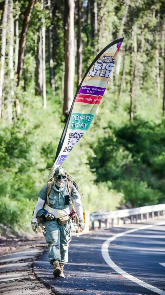 I rebuilt the Captain Australia costume, bought new equipment, got myself ready for “Captain Australia’s BIG WALK” where I would walk from Brisbane to Melbourne (2200km+) dressed as the superhero Captain and raising money for paediatric cancer research (‘The Kids’ Cancer Project’) as no child should endure what I did.