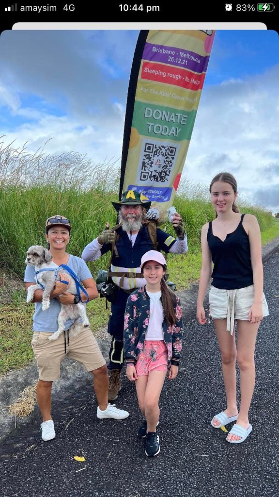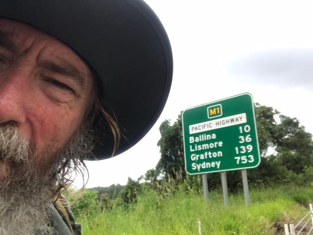 The weather had cleared up, it was an overcast and misty morning, so I set out, following the winding local roads south, headed for Ballina and the hopes of getting there in time to repair my phone. The screen had spiderweb cracks and it was glitching out a bit weirdly. I couldn’t (and still can’t, haha) afford to replace it, it’s a dodgy old iPhone 7 that I picked up secondhand online. I’ve always worked hard, tried to look after the people I love. I owned and operated a travel insurance company (www.simplytravelinsurance.au, only just now revived) but the COVID border closures had paralysed it. I’d been living off the mortgage for a couple of years, and the grand or so I spent on gear for the BIG WALK was more than I could afford, really. The damage to the phone was devastating, and preying on my mind. I was worried about staying in touch & recording the walk – no longer just for my family, now also for the people watching, the people who said it gave them a sense of hope, a window into a world that was somehow better and finer.