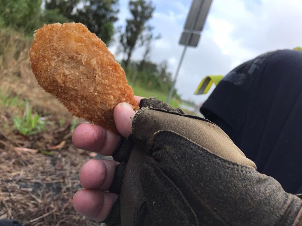 For example, in my pack I found some crumbed prawns I’d bought at the chinese shop in Tweed Heads (now .. what ? … five or six days ago ?) I was on protein bars and water, so I decided it was a smart idea to eat them.