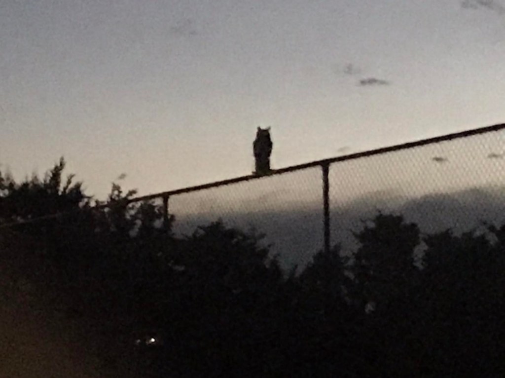 This owl was watching me (perhaps with disapproval), but once I was cleaned up I went back to the motel and caught up on messages. (Including one from Lorraine, who wanted to walk with me the following day).