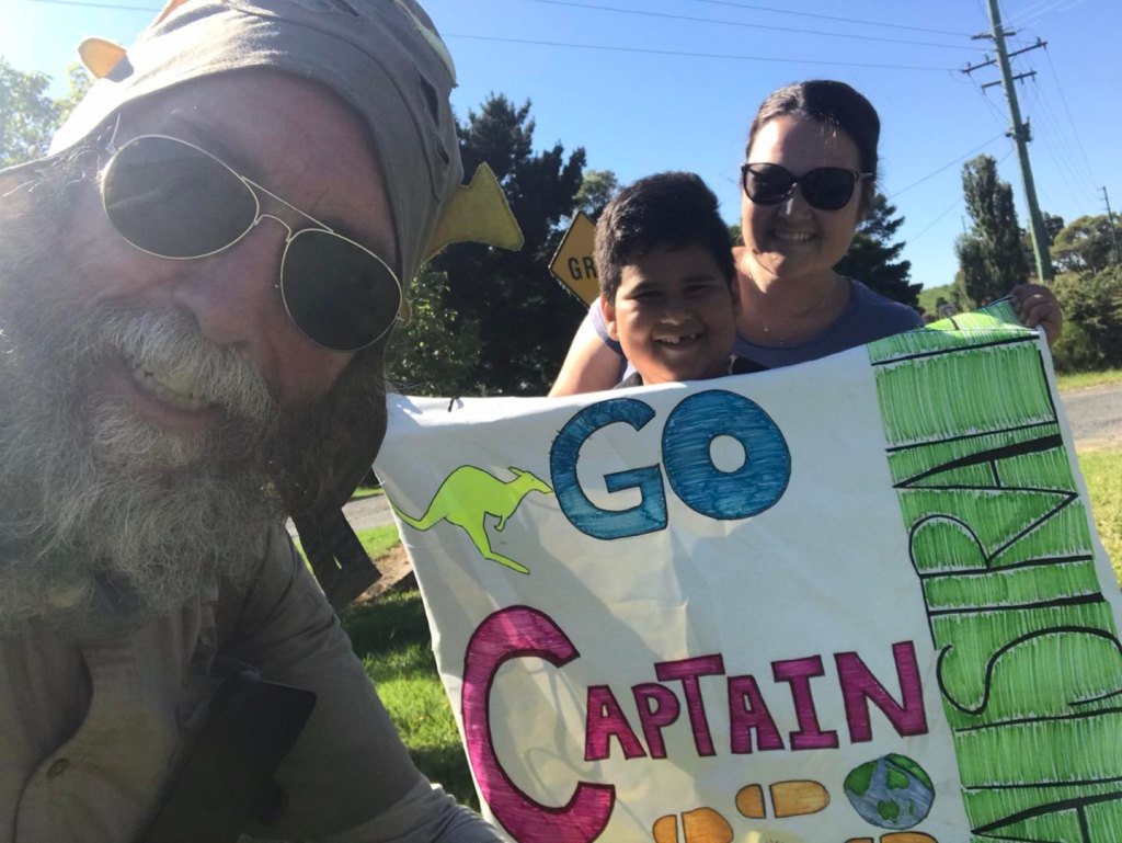 As we closed in on outer Bega, I met this lovely kid who gave me this “GO CAPTAIN AUSTRALIA!” sign (that I’d actually seen hanging on a property a little while back).