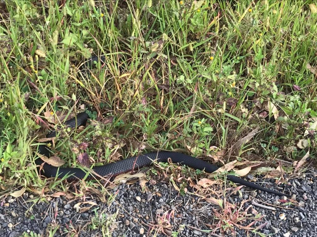 It was a nice, hot day, and I saw two more redbelly black snakes slithering dozily along in the roadside grass, but we steered clear of each other.