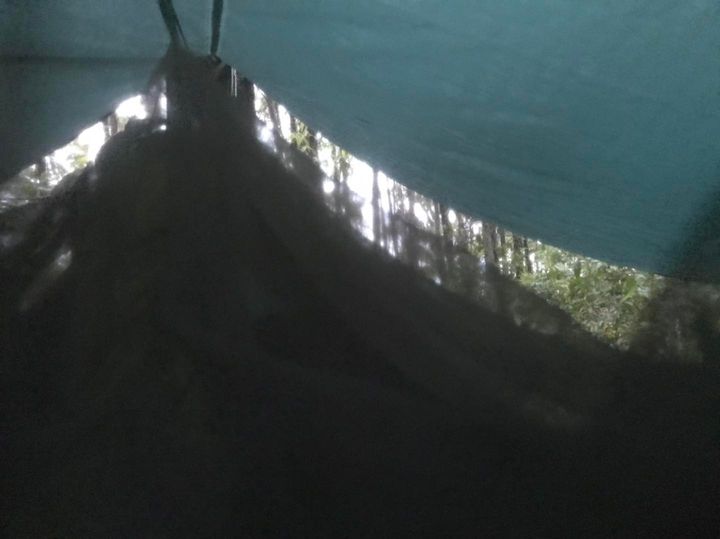 I’d spent the night well off the road, in a deep section of new growth forest, but there was no canopy, so the rain had full access.