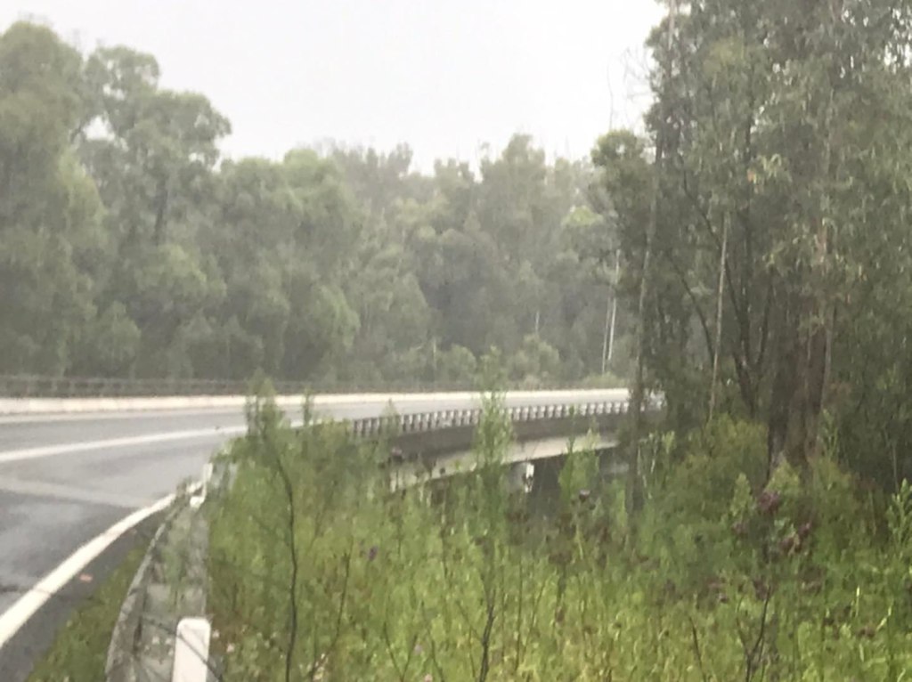It did die down to a light patter though, so gathering my gear together, wrapping my wet-weather poncho around me, I hit the road.