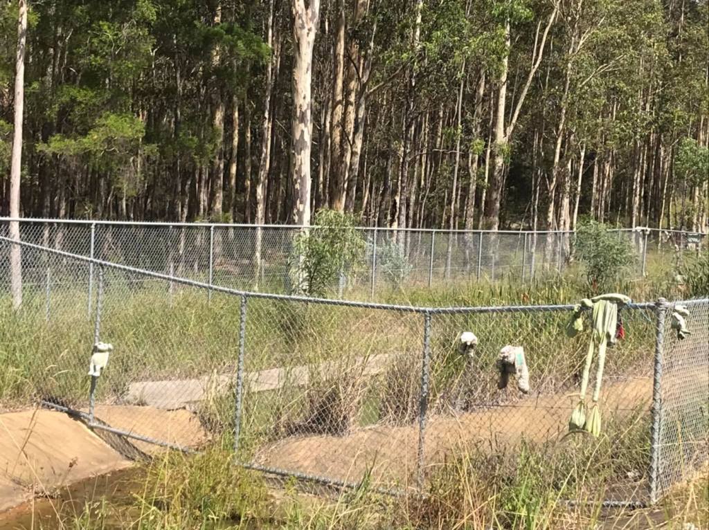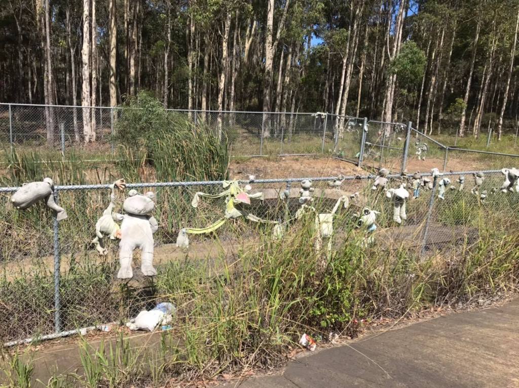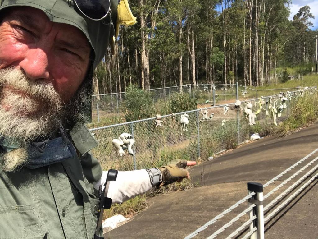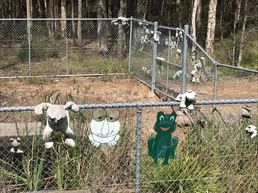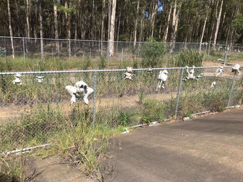 Once I was out of Nowra, I came across this long stretch of fence covered in frogs.
