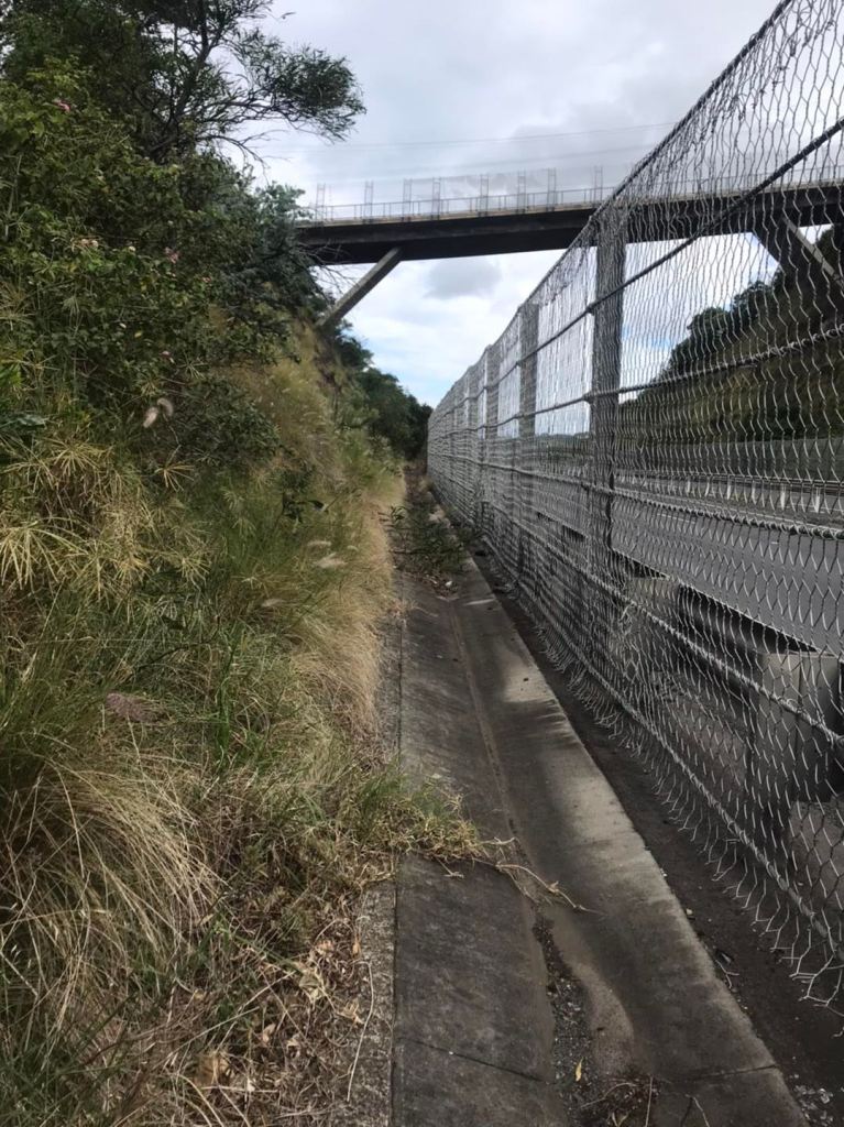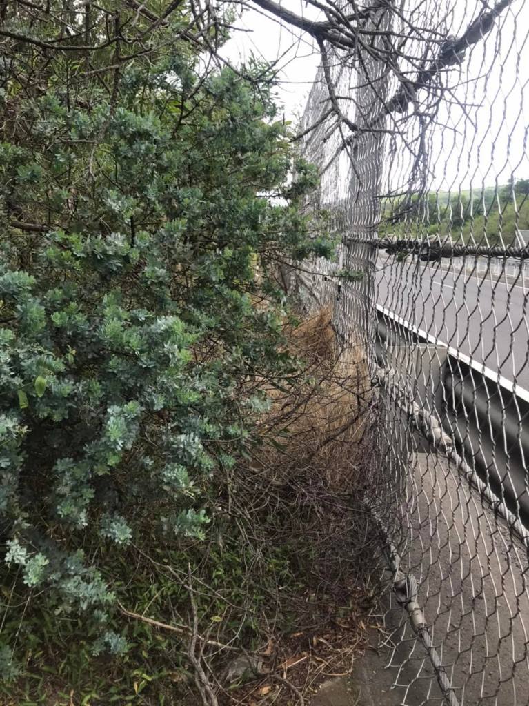 See the picture of the highway ahead ? The shoulder all but disappears and my best/only option is to walk behind this chainlink fence along a small drainage culvert.