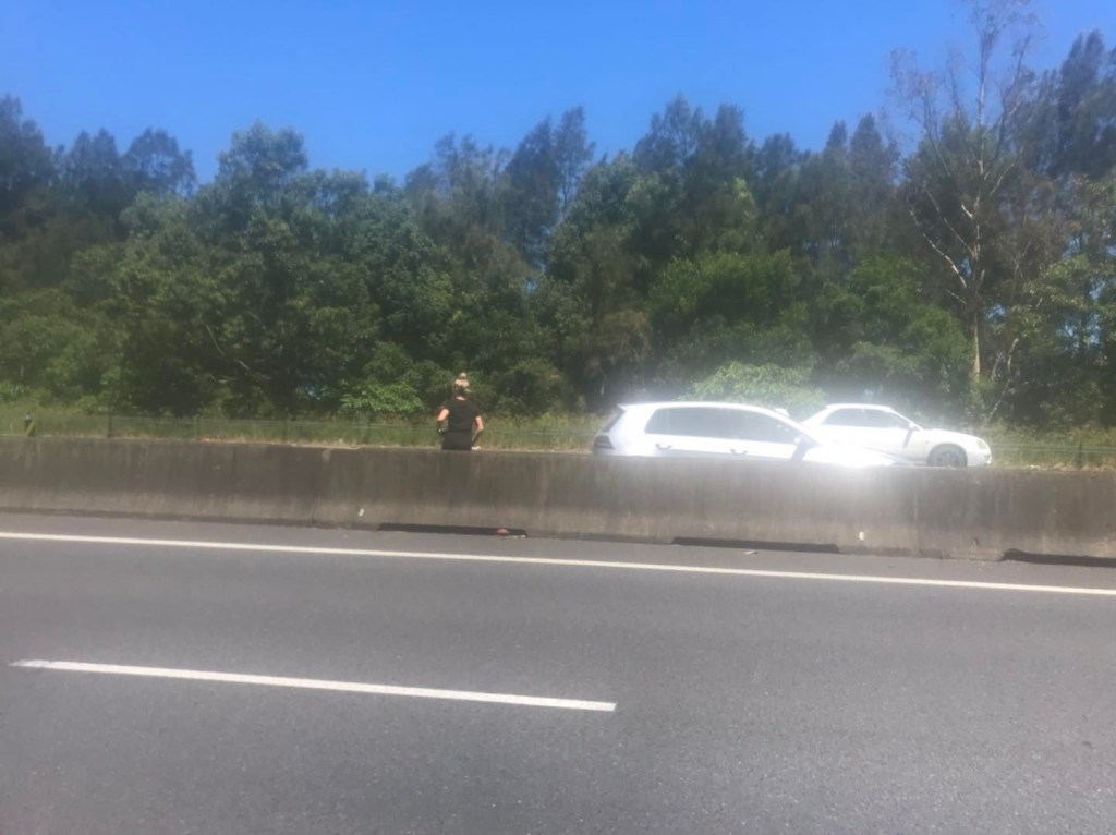 OK, now to the right you’ll see a car pulled over on the opposite side of 4 lanes of highway, and a person coming across like a game of Frogger. That’s Kyah.