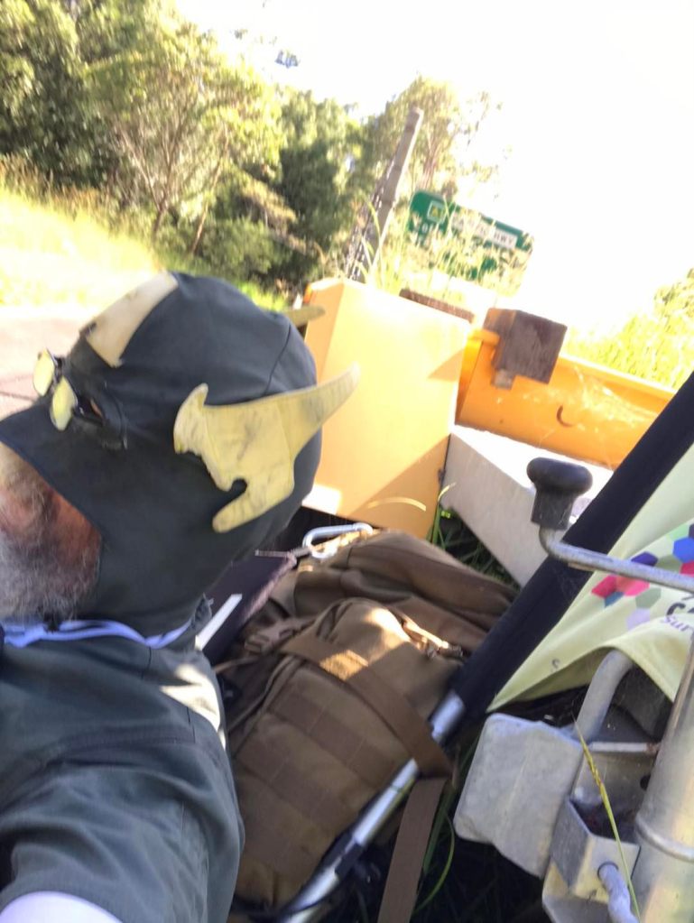 Because it’s a population centre, I tried to make sure to have the BIG WALK charity banner up when I left Coffs Harbour. Now that I’ve been home for a long time, that weird game of tetris with the banner has slipped from memory, but re-living it now, it was so fun and funny.