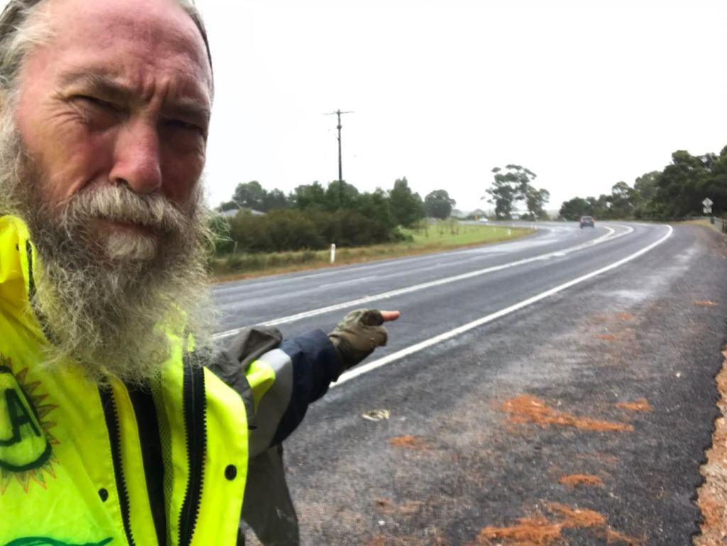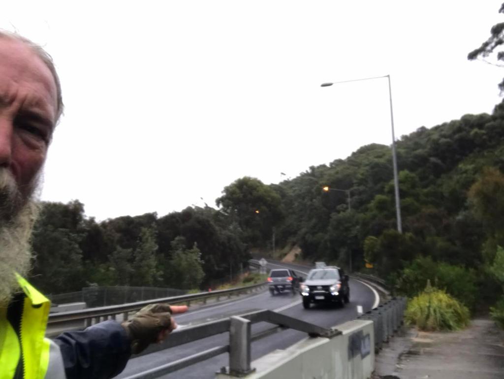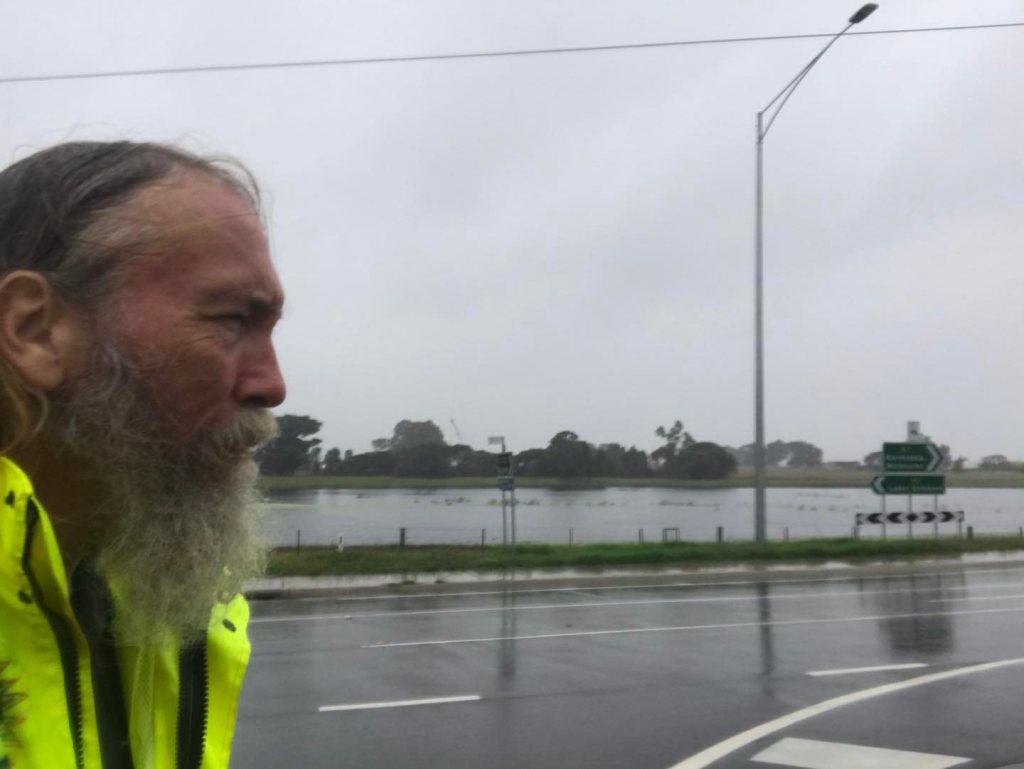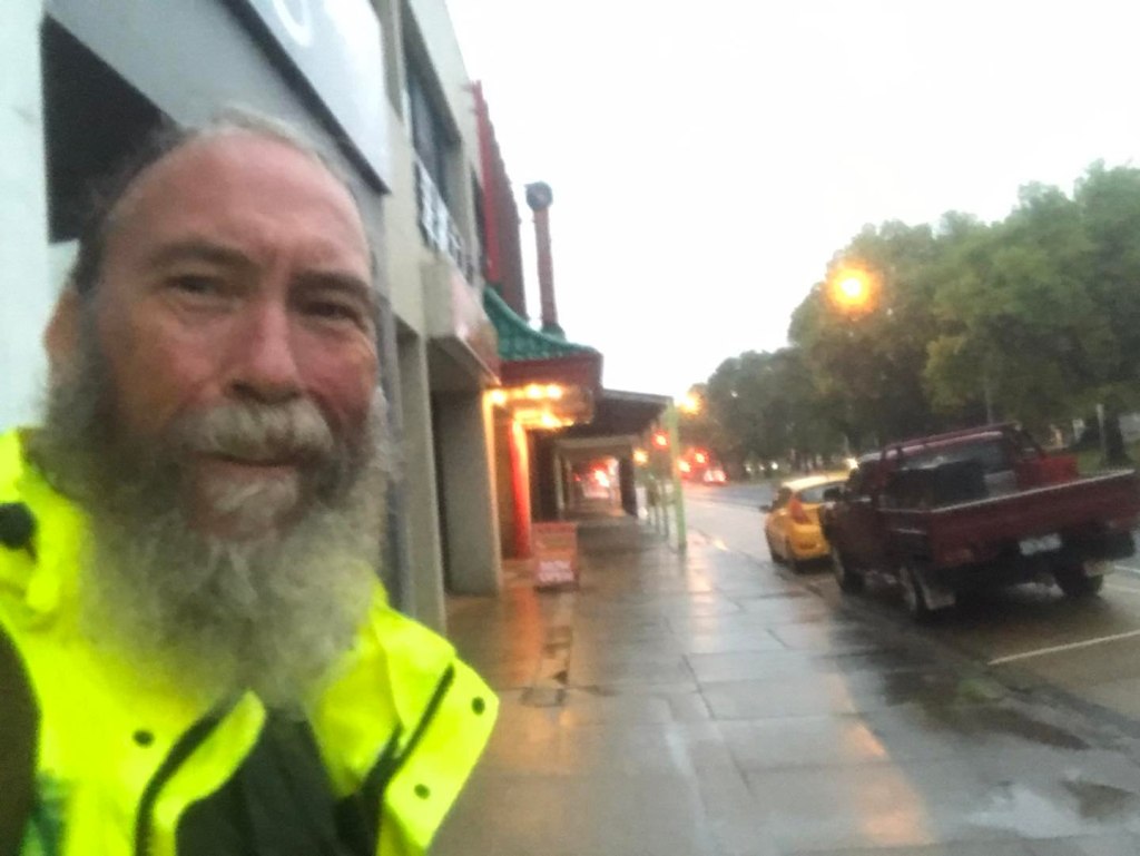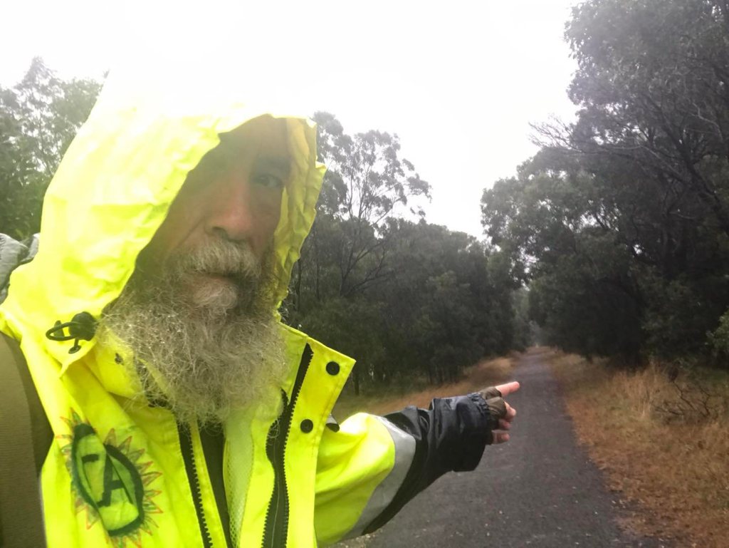 After a long day’s walk, I found a little bus shelter about 8km out of Bairnsdale, and sat down for a dry rest. The rain was relentless.