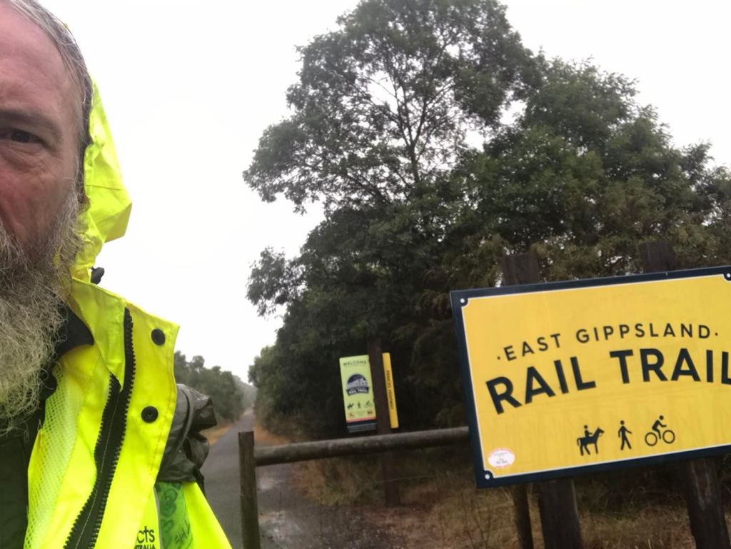 I was able to follow the East Gippsland Rail Trail into town, and while on the road I got a new DAILY DONOR DARE OF DOOoOOOM (to do athletic/funny poses at an all ability playground – had to leave it for the morning, given the weather).