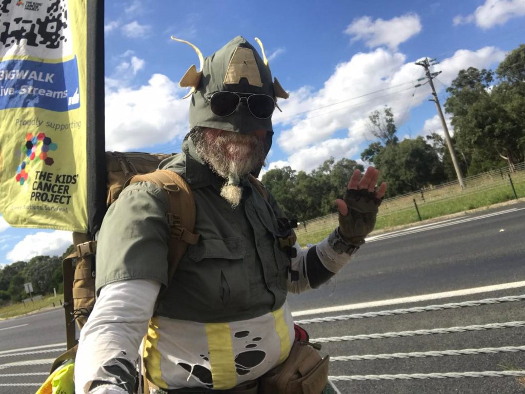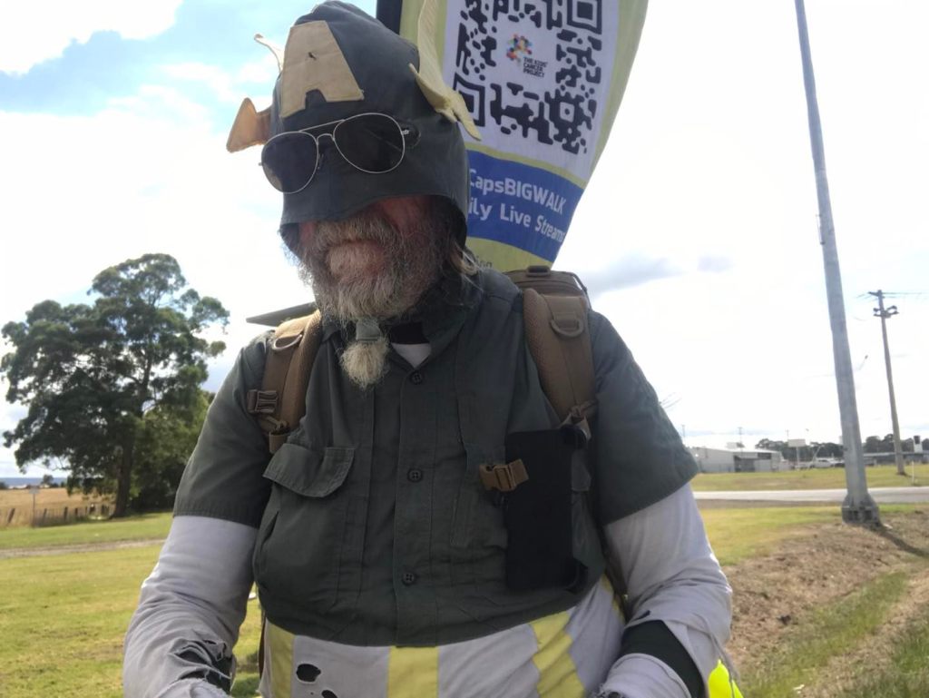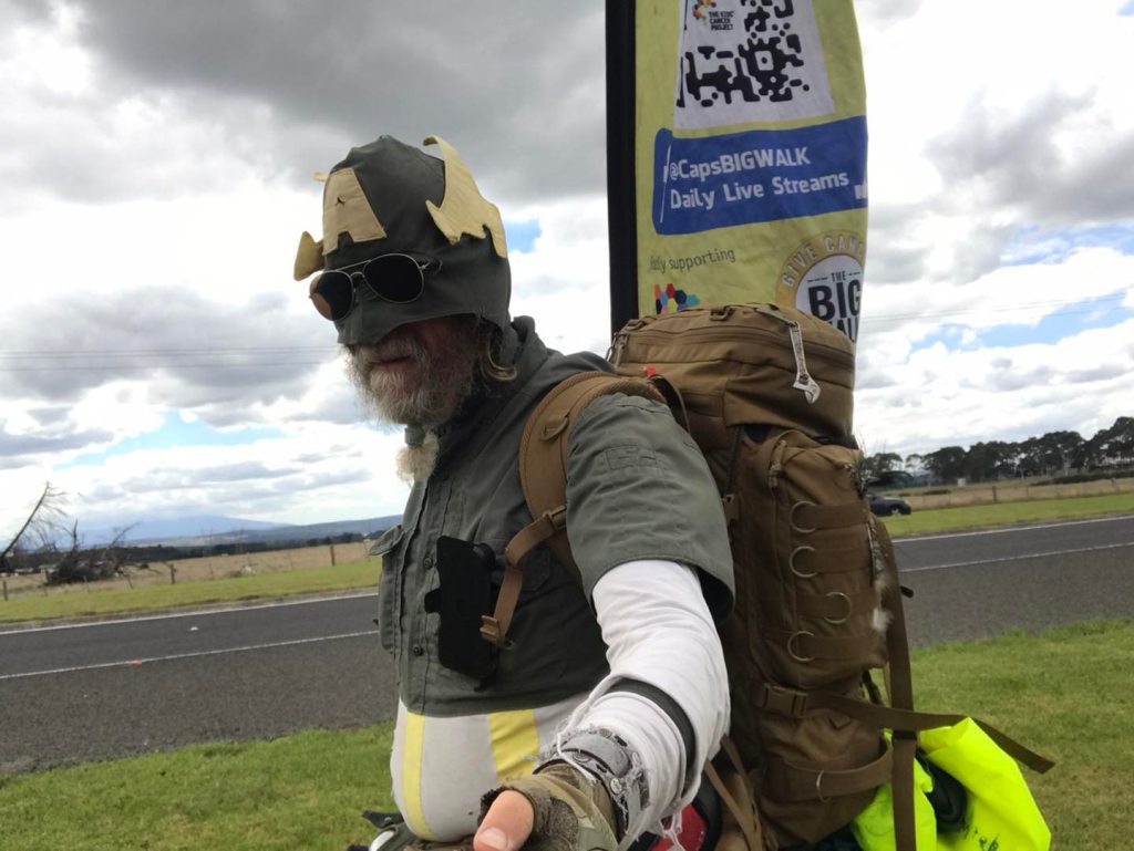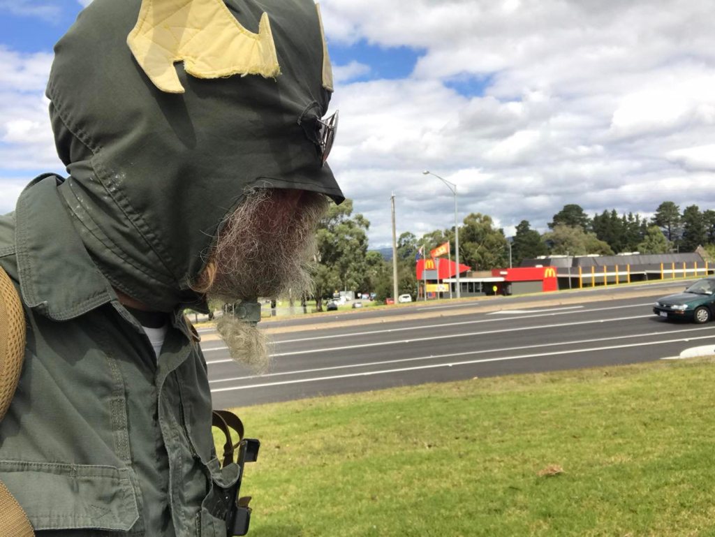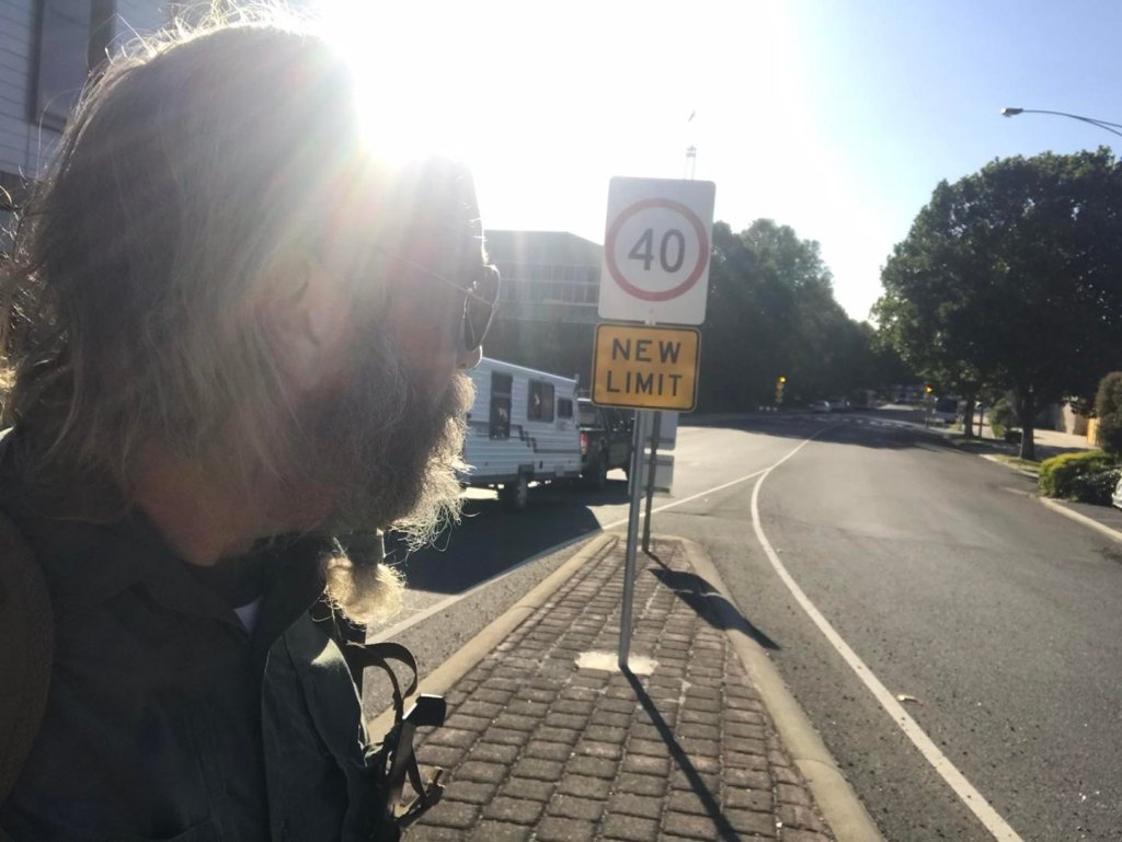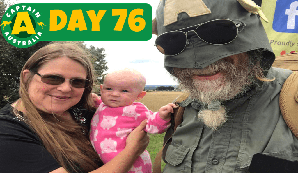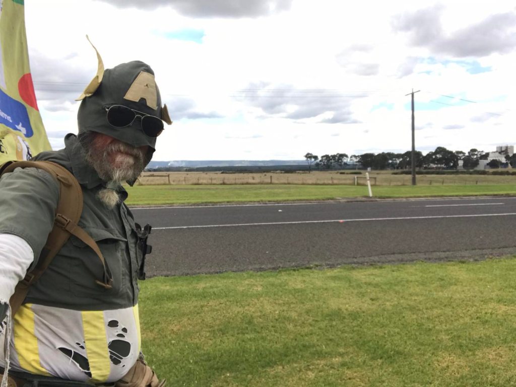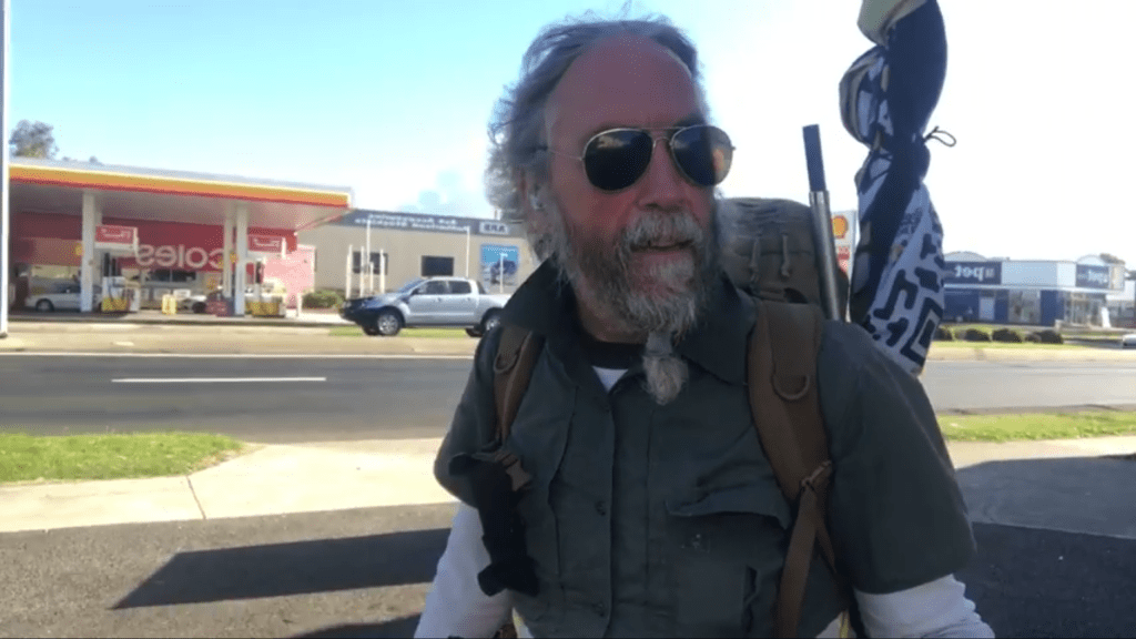 I’d get these really full on BEEP-BEEP-A-BEEP-BEEPITY-BEEEEEEPs!!! sometimes, and I just like to imagine that person, having heard the radio just now, suddenly seeing the old boofhead with his big old flag (the dag with a bag and a flag) walking down the side of the road and having a bizarre rock star moment, “It’s HIM! It’s that walking bloke !!!” and laying it on the horn like a maniac.