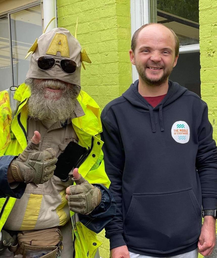 Just outside Stratford, I was ambushed (in a nice way) by THIS character, my new mate Kerryn. Absolutely flat-strap wonderful person. Ethical, direct, honest.