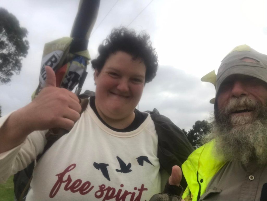 Later, about 7km out of Sale, THIS tremendous person (Kaz) approaches me. Just wearing a pair of old thongs, she walked with me for the next 2 hours, talking about every thing under the sun, pretty much.