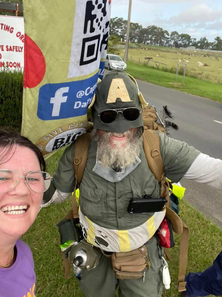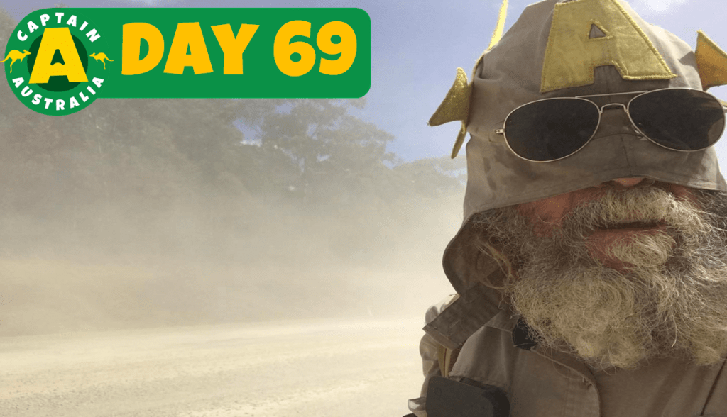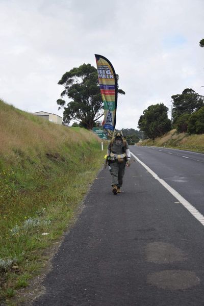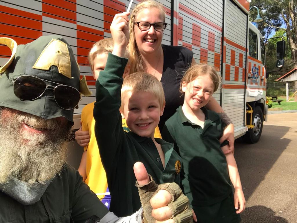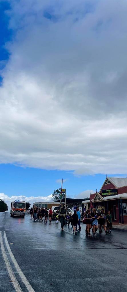 Vehicle escorts from local fire, SES and police, a large group of school children following with me, giggling and waving Australian flags, people coming out of their homes, approaching from the sidewalk, putting donations for the charity into a bucket that Peter and Julie had kindly made up, with all the charity info taped onto the outside.