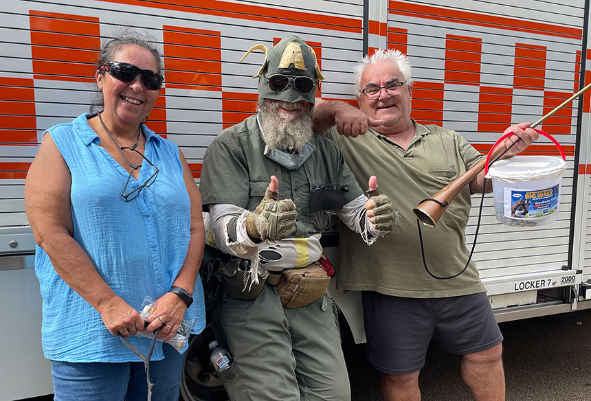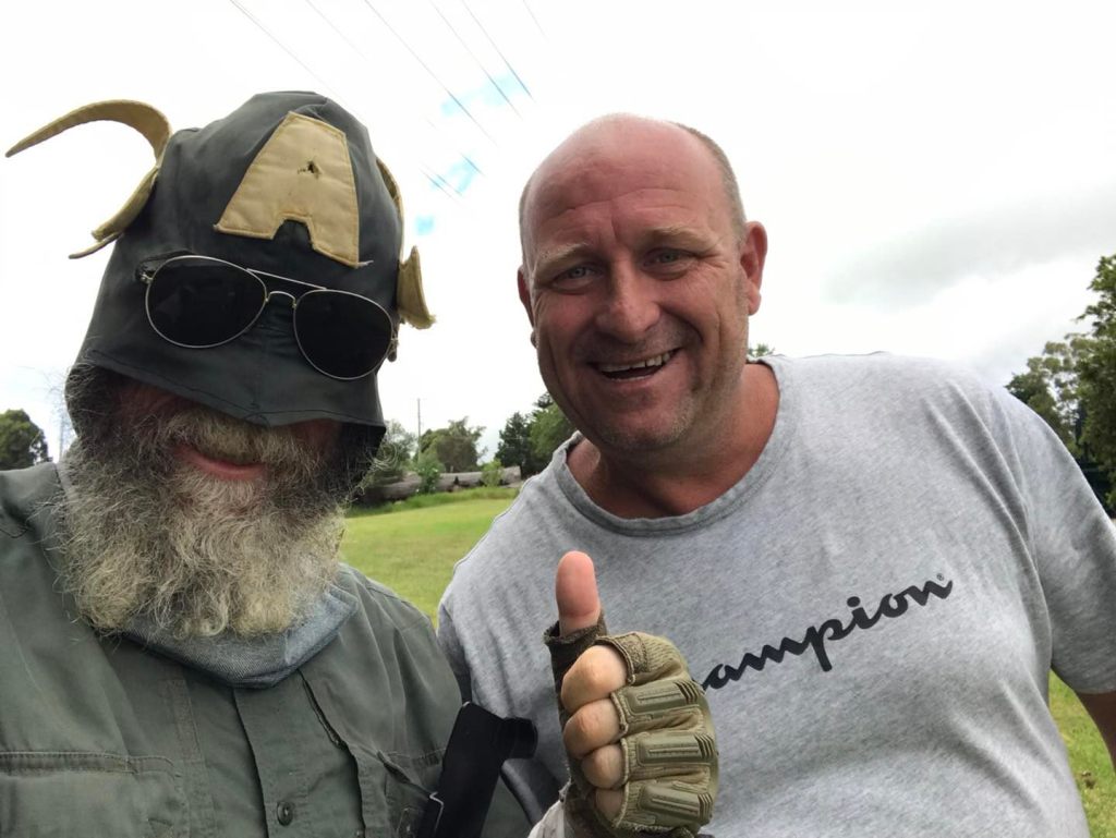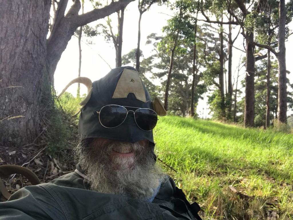 Peter was ranging ahead, into town, and he kept blowing this magnificent horn like some Mad Viking and yelling “Captain Australia is Here ! Captain Australia is here !”