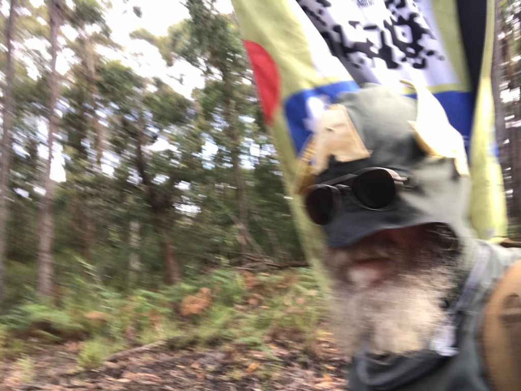 I’d slept in scrub not far from the rest area where I’d had dinner with Julie and Aunty the evening before. There had been *more* rain overnight, but I was able to do a bit of a stocktake in the shelter – although I bit stinky from the days of toil and sleeping rough, I still had more-or-less dry clothing to wear, and enough water and food to get me to Orbost.
