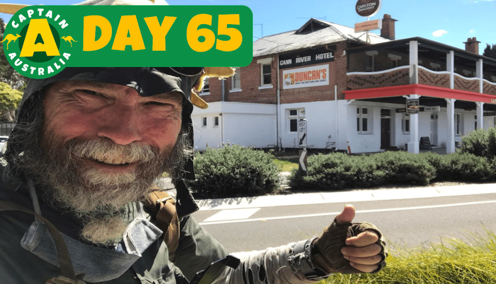In terms of toil, Day 65 was actually a pretty light day. I was still plagued by nasty weather (which my Magnificent Mallacoota Coat resisted well), but I’d been invited by Jodie & Graham to come to the Cann River pub and stay overnight.