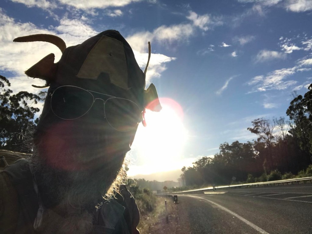Protein bar, chug of cold water, and the old boofhead was on the road. (again)
