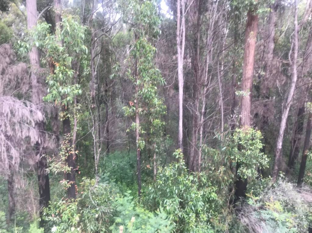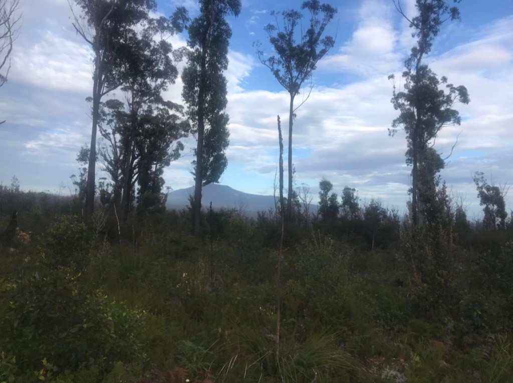 It cleared around sunrise, and I woke to an eerie mist. The area I’d slept had been ravaged by fire, it was all new growth saplings and older dead trees.