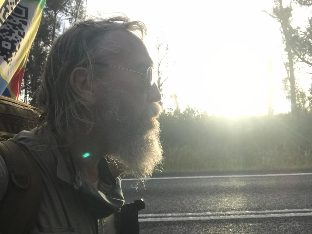 I reckon I was still about 20km or so from the border, maybe a little more – so with my flag up, and hair in a nifty pony-tail, I started the day’s march.