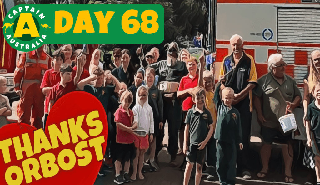 Day 67 was a long and solitary day on the winding road to Orbost. I met Peter (a wonderful local man who was instrumental in arranging the reception I received) in the morning, and Julie and Aunty Margaret in the evening.