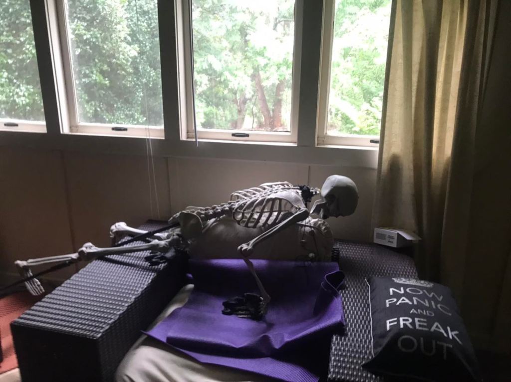 Pleasant .. except for the menacing skeleton (which I named “Gary”) who kept moving around and creepily watching me sleep.