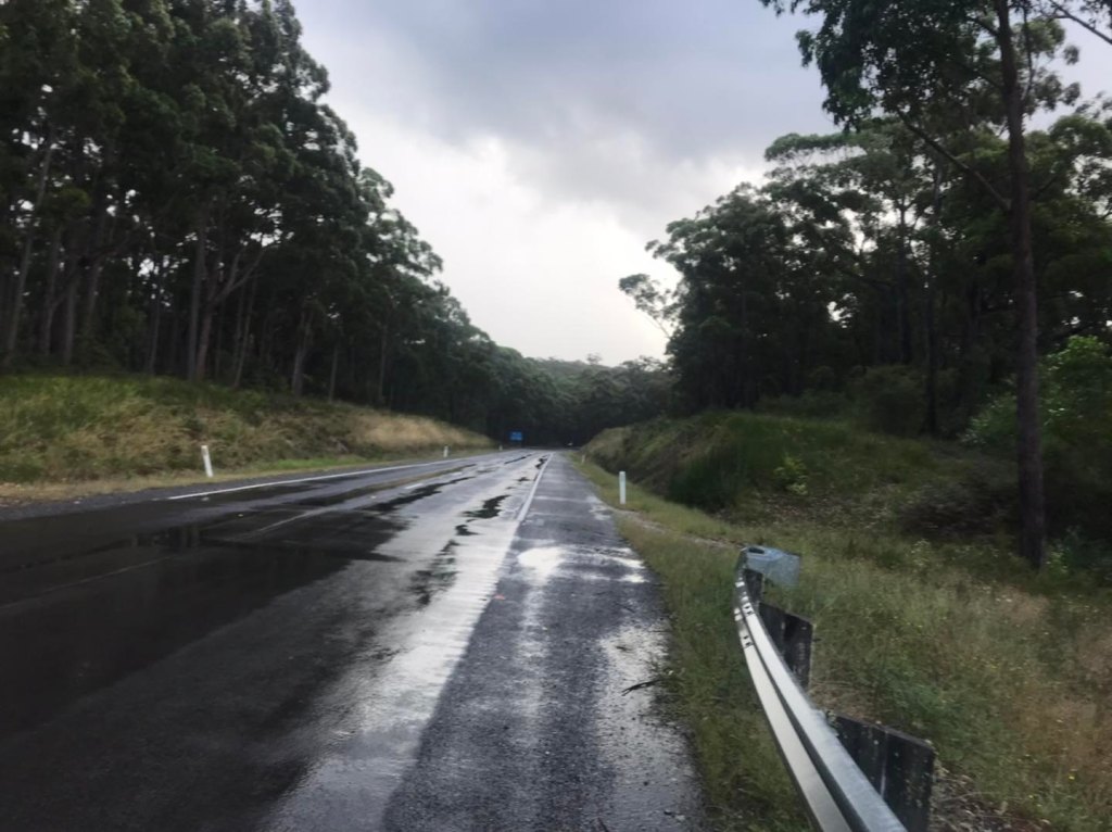 As I got out onto the road, I heard a tree come down, a big one, with a massive crash, like the crack of dynamite. This happened again a few times throughout the day, where fire-damaged trees that were either long dead or mostly dead got waterlogged, and the rot from excessive rain caused the trunks to implode and collapse.