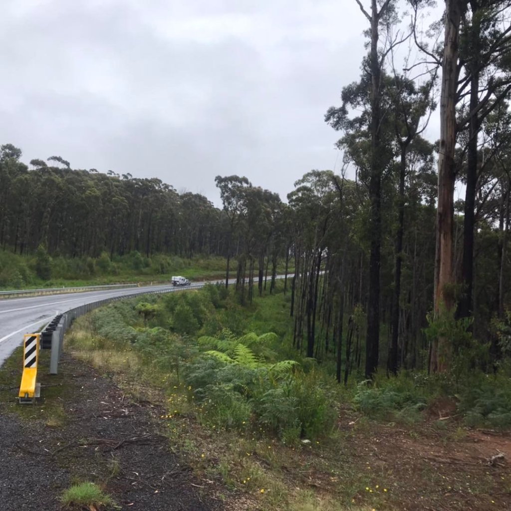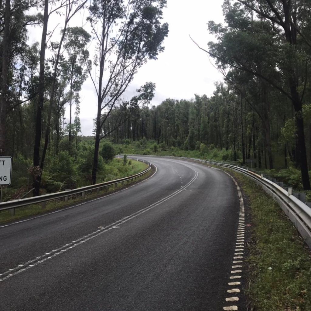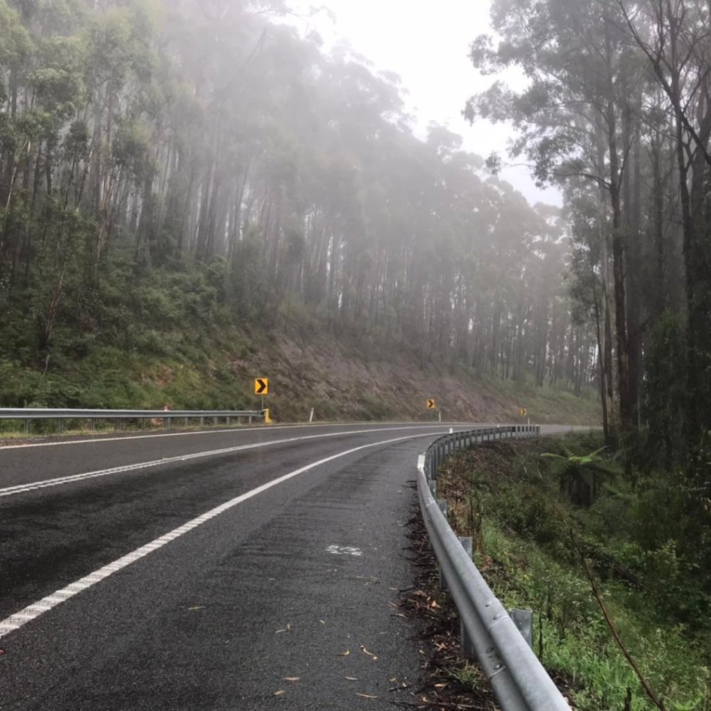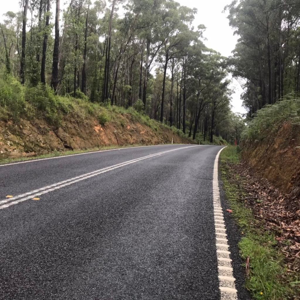 For now, more remote Victorian forest roads, bushfire damage, rain and hills. (And I was loving it)