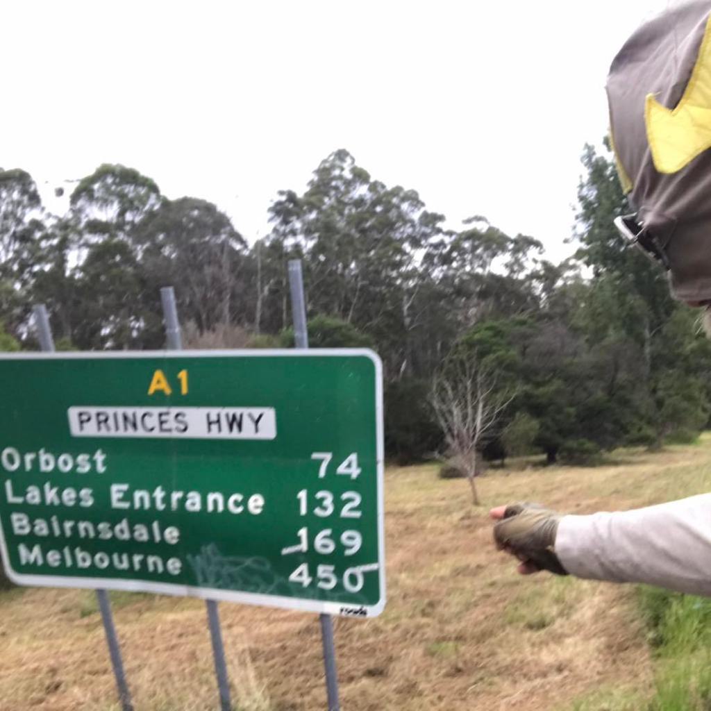 Since I was working backward from arriving at Fed Square on the 19th, the pressure was off, so my plan was to do about 30km x 30km x15km and arrive in Orbost at lunch-time of the third day.