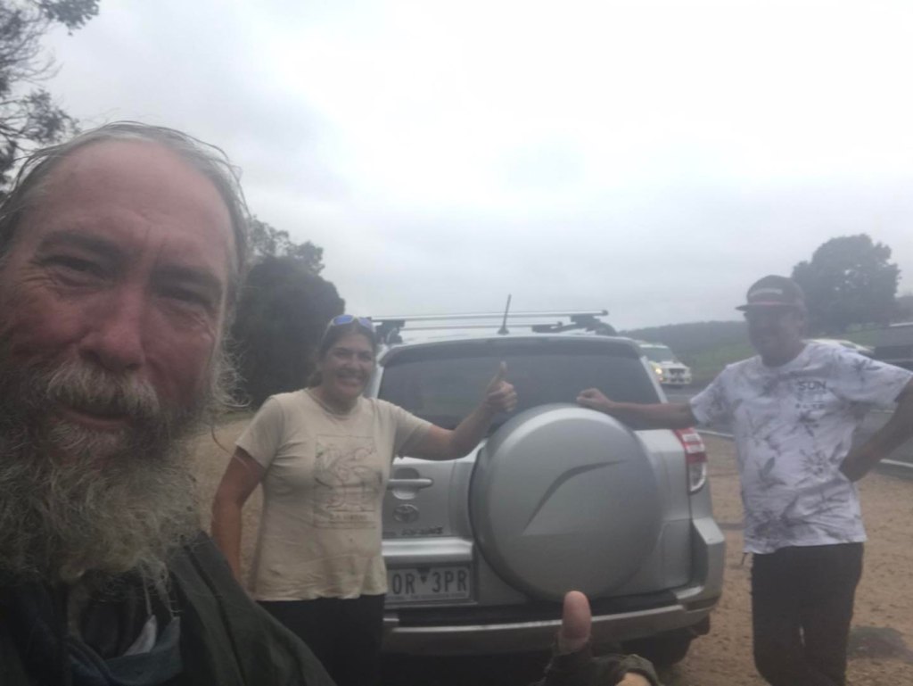 I think I got to the Mallacoota turnoff around lunch-time, and after a little wait, they rolled up in their 4WD and I was able to chuck my massive old pack in the back.