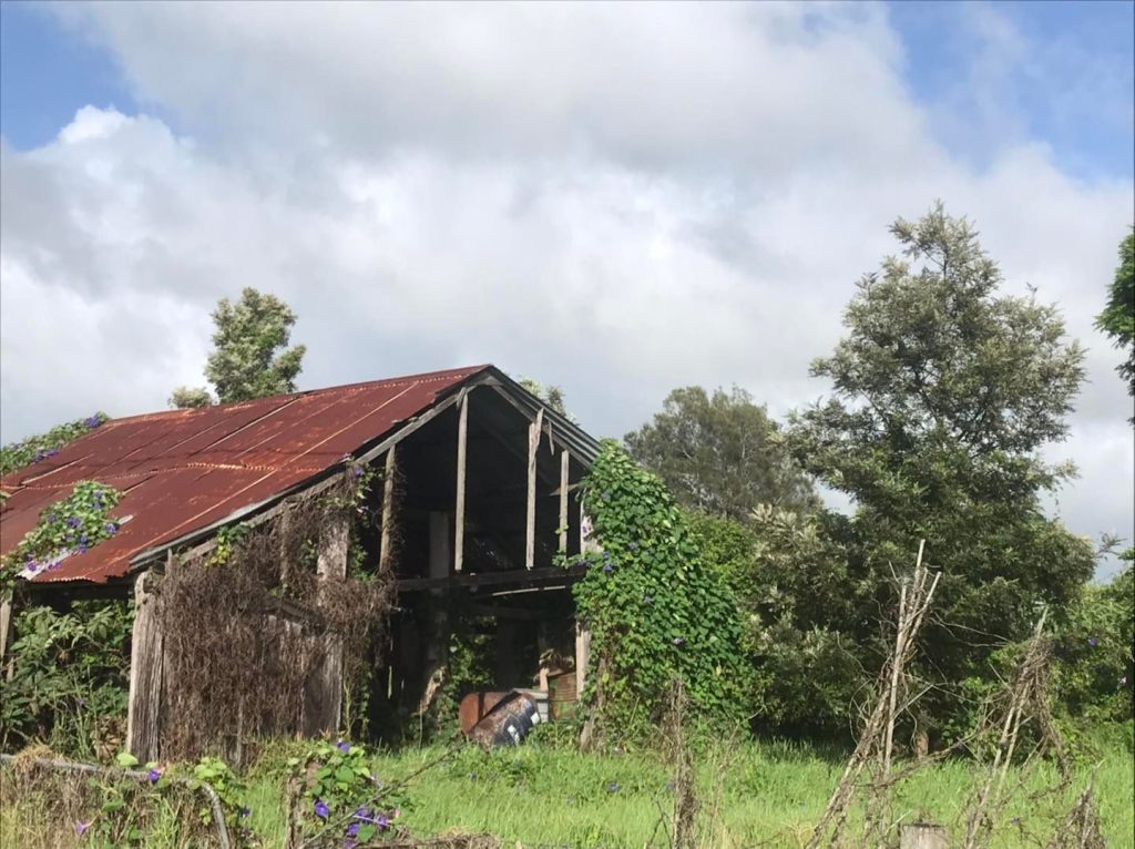 I found this big old barn (no doubt a haven for snakes underneath the floorboards, but I was careful), with some broken down farm gear next to it. As soon as I decided to rest, the sky started to drizzle again, so I took shelter under the rusty farm gear and had a protein bar.