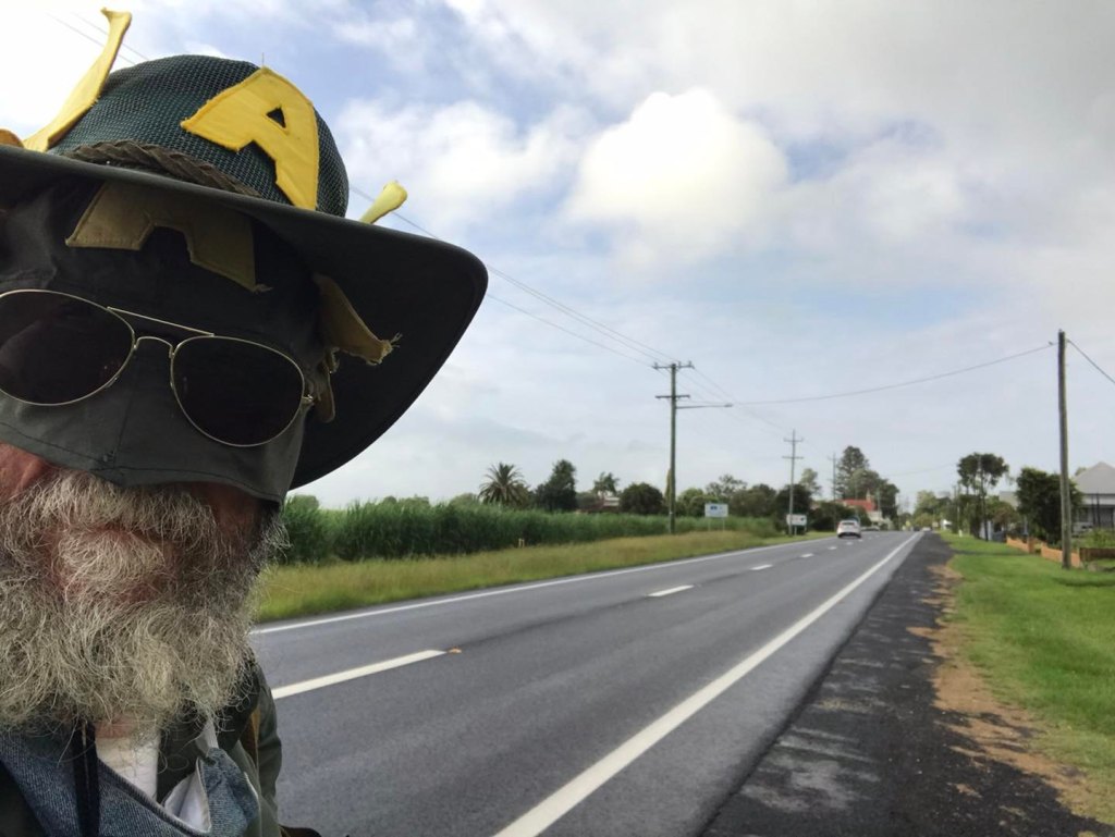 Actually first, a quick anecdote from Ulmarra – after the livestream I popped into the local petrol station to buy a sausage roll for breakfast, and the woman serving stared at me like I’d just landed from Mars (haha). It’s a sensation I’ve become quite used to, even in my post-walk life. For winter my wife brought me this bright pink scarf (as a joke) which I now insist on wearing around, along with a bracelet this lovely little girl (Phoebe) in Traralgon made for me (it’s very girly). The other day in Coles this old dude outright stared at me, with an expression of mild disgust on his face. If I could get a photo of him and the Ulmarra service station lady and overlap them, I’m sure the expressions are identical, haha.