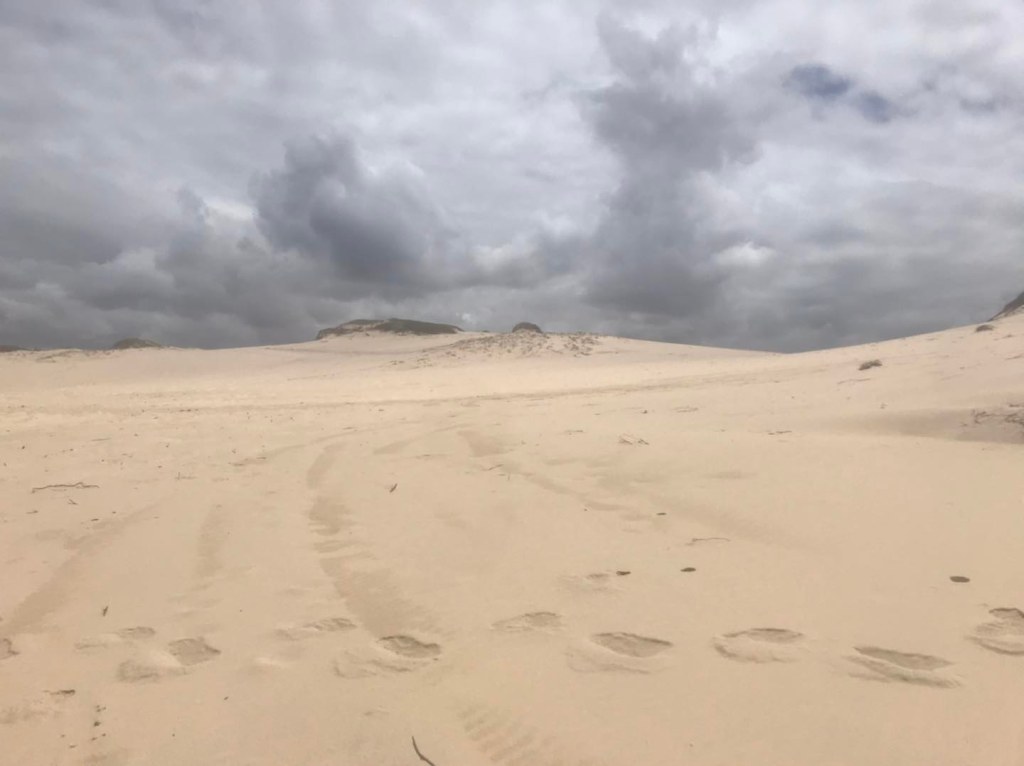 I had to climb this massive, steep grassy sand-dune, and when I lurched over the top, it was like being on an alien planet, sweeping hills of sand – after all that green.