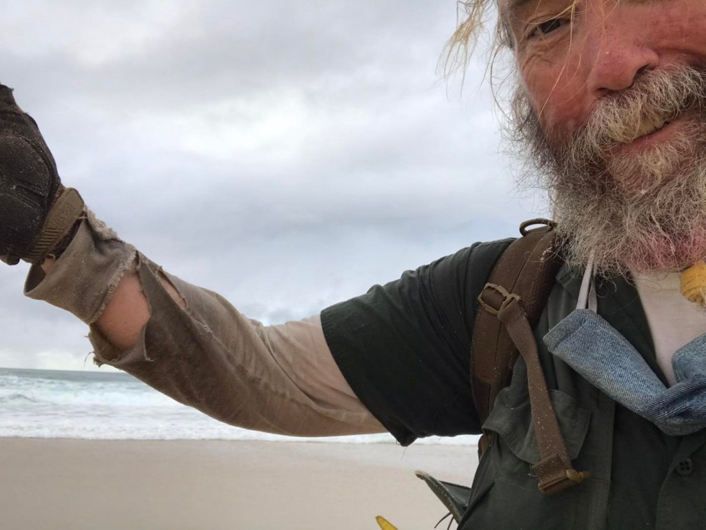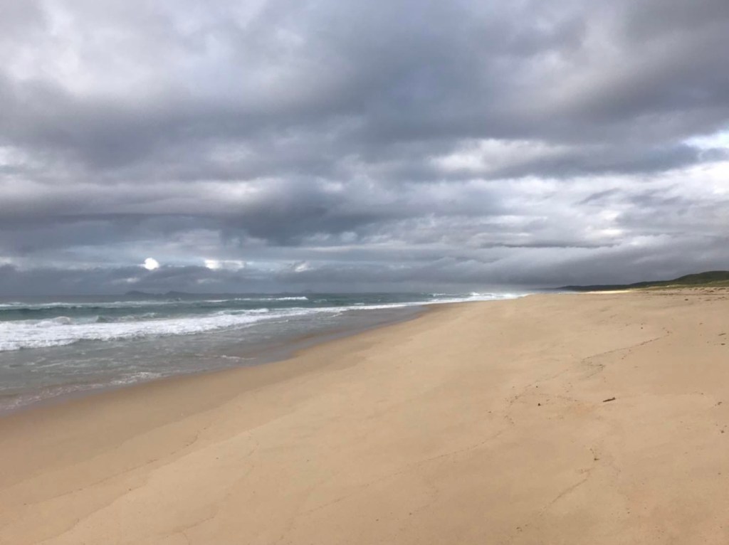 It was a long and uncomfortable night – a coastal storm lashed at me, I’d chosen a fairly protected place to sleep (overgrowth and wind shield, but no real risk of falling branches), but sadly the tarp failed.