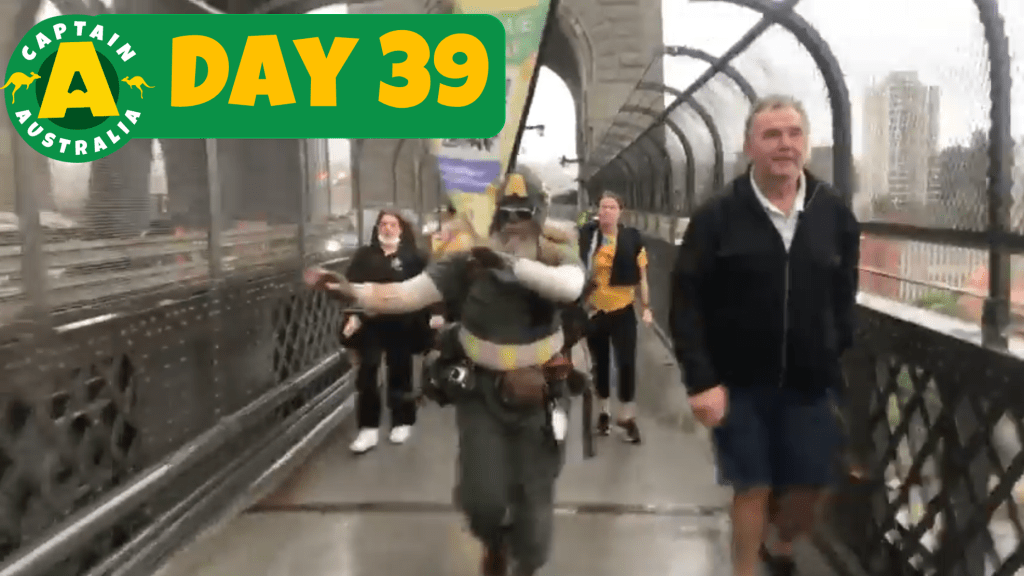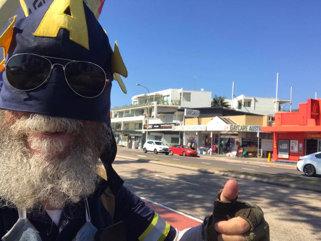 I think there’s a level of spectacle to an old man dressing up like a superhero and walking down the eastern coastline (or all the way around .. the BIG LAP), but I didn’t do enough to take advantage of that for the charity, I reckon. Rolling into Sydney was a tremendous opportunity, and I flubbed it.