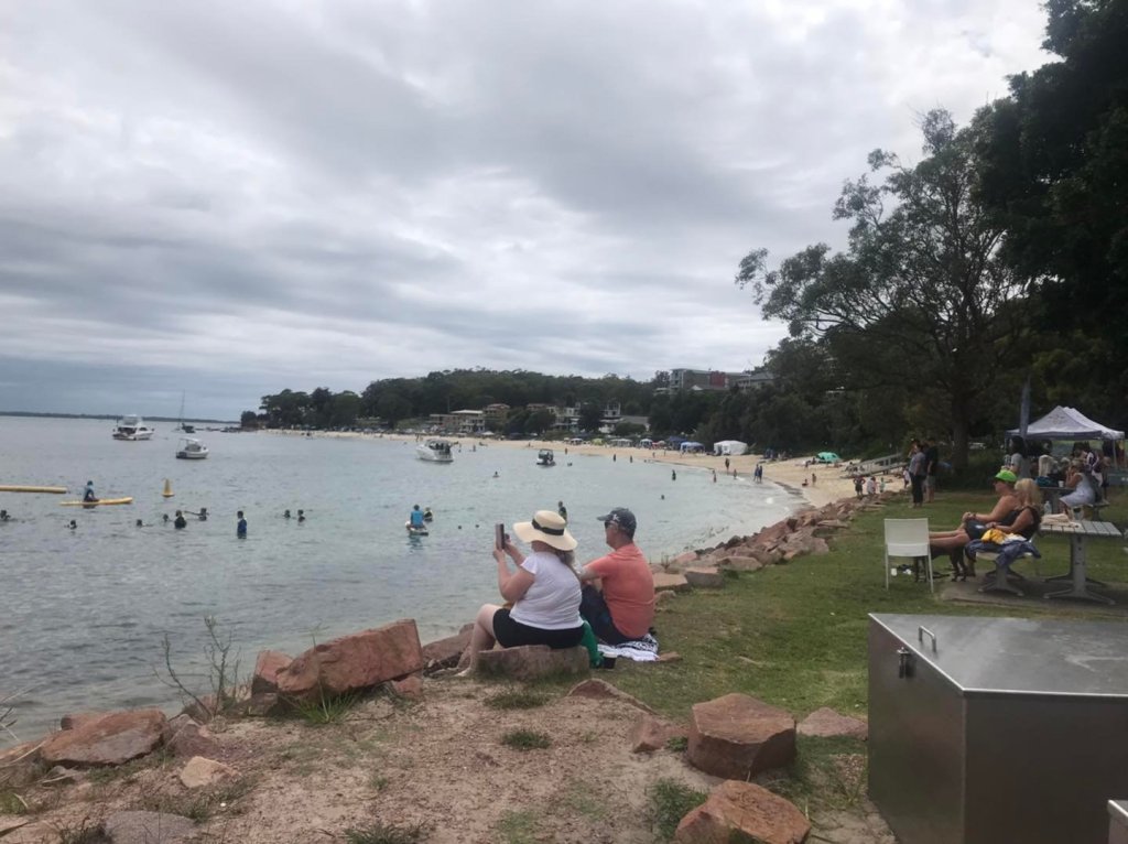 There were some big crowds on the beach at Nelson Bay, a large inflatable water-play attraction, people having a great old time.