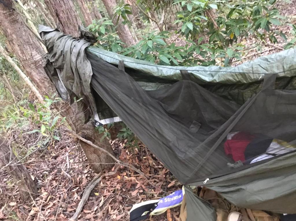 I spent about an hour in the late afternoon looking for an optimal campsite, and found a good, discrete patch of bush that wasn’t too heavily grassed or had too much undergrowth (that, because of snakes and other pests). I also was watchful for other hazards like falling branches.