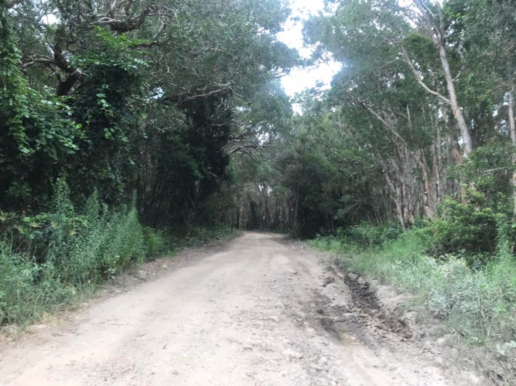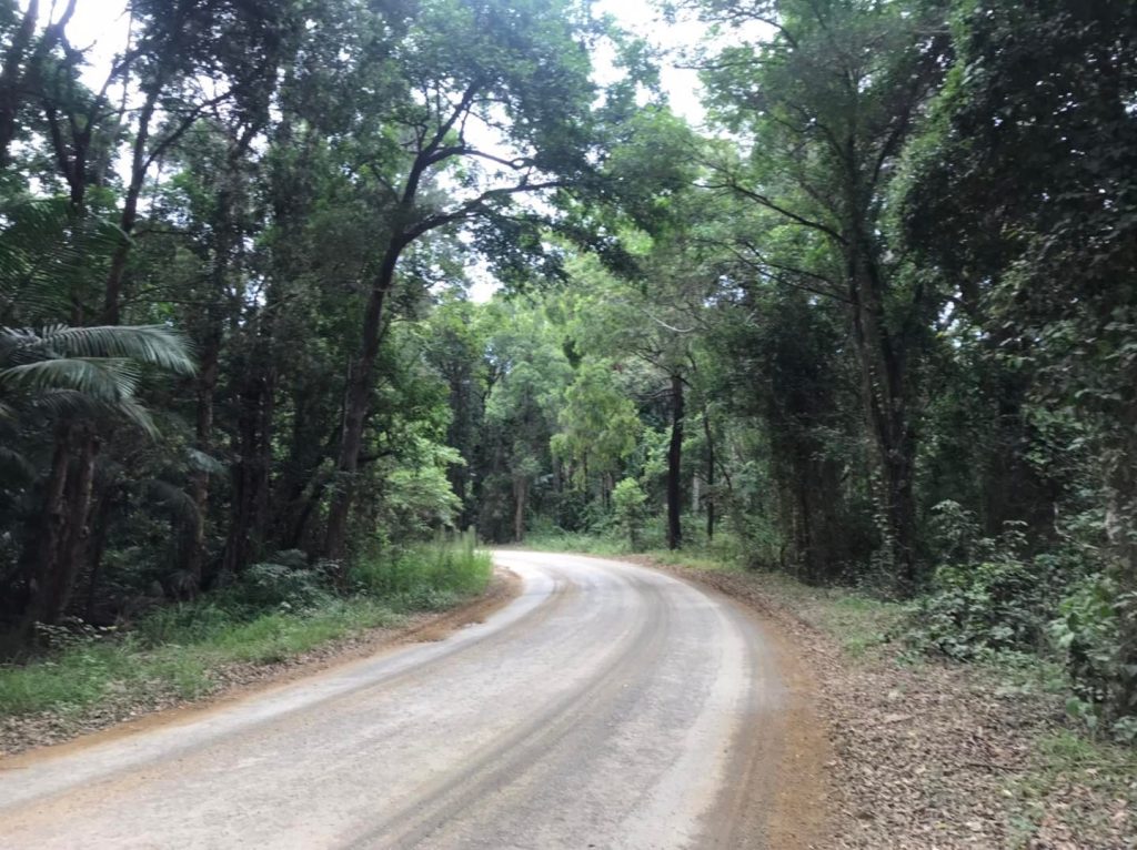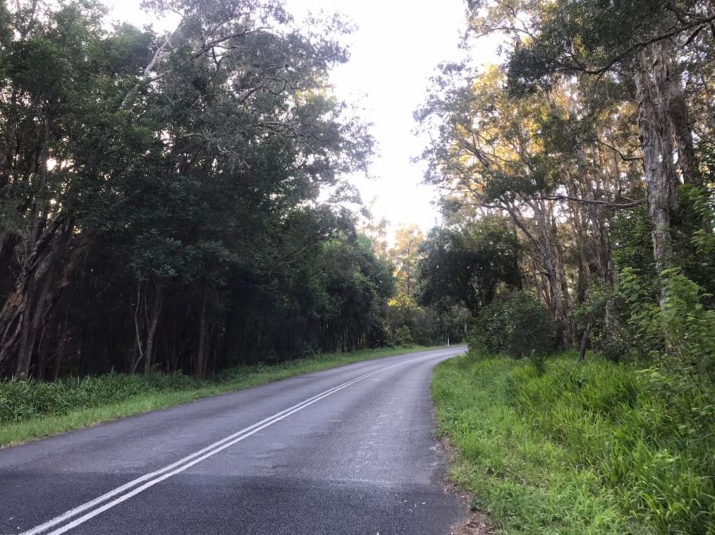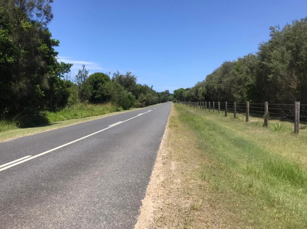 Just long stretches of bush-like road. Good visibility so I could just walk straight down the bitumen and head off into the grass when I saw a car coming (always walk on the side of oncoming cars, not with them coming up behind you !)