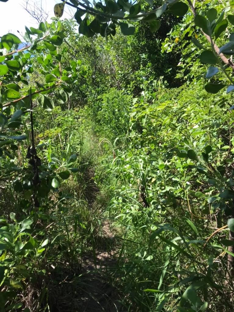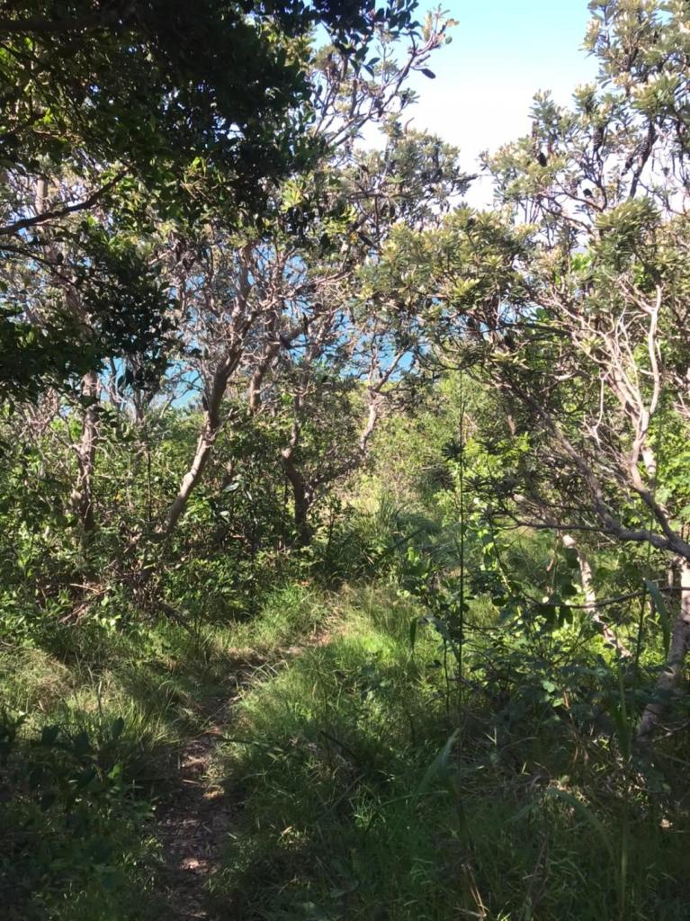 After that, I had an option of following a winding road or going into the bush, and I saw little goat trails and figured the odds were pretty good that I could find one which would take me all the way down to the beach.