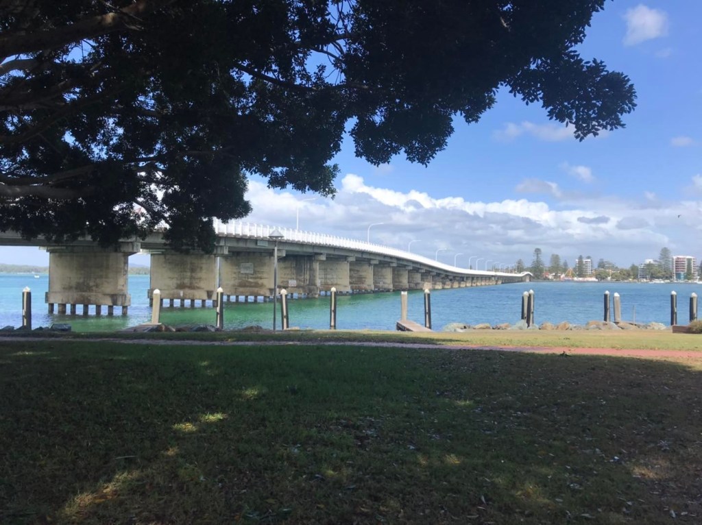 I continued into Forster-Tuncurry, crossing that long undulating bridge (twice). I actually bumped into the lovely Deb from Black Head again (there for a physio appointment or something, from memory). It was late morning and I was thinking about a spot of lunch, and finding a gift and a post office (it was my middle son, Sullivan’s birthday coming up in early February), then continue south for Newcastle.