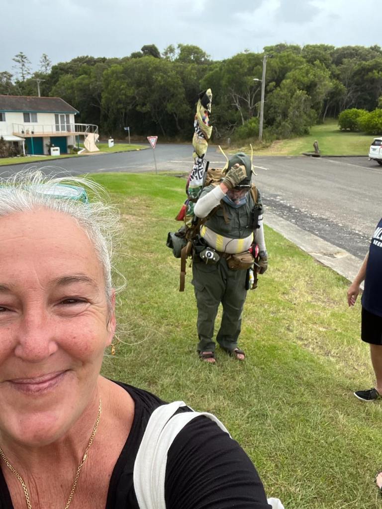 Quick g’day, gobble a protein bar, hoist the pack and move on, old fella.