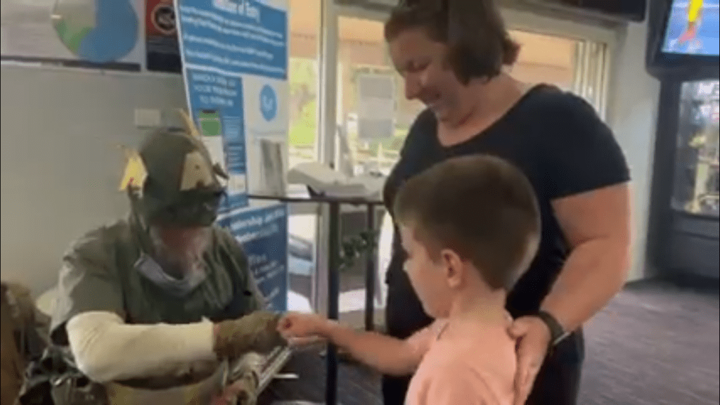 He came up and gave a donation, and a picture that he had drawn of me. It was so sweet and touching, and an echo of my own children who I missed terribly.