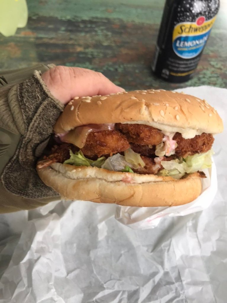 While I was enjoying this absolutely delicious seafood burger, my host (and soon to be friend) Deb came up.